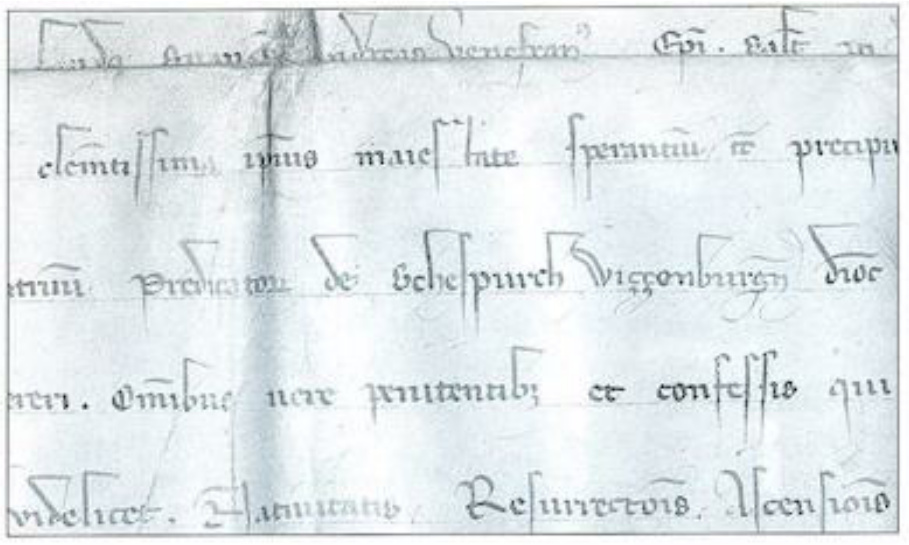Ausschnitt aus dem Ablassbrief von 1298. In